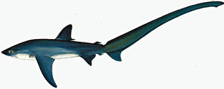 Another easily identified shark, this one incorporating a design modification at the other end in the form of an impressive extension to the upper tail lobe. It's as long as the rest of the shark's torso, and is used to corral a shoal of mackerel or herring into an even tighter bunch. |